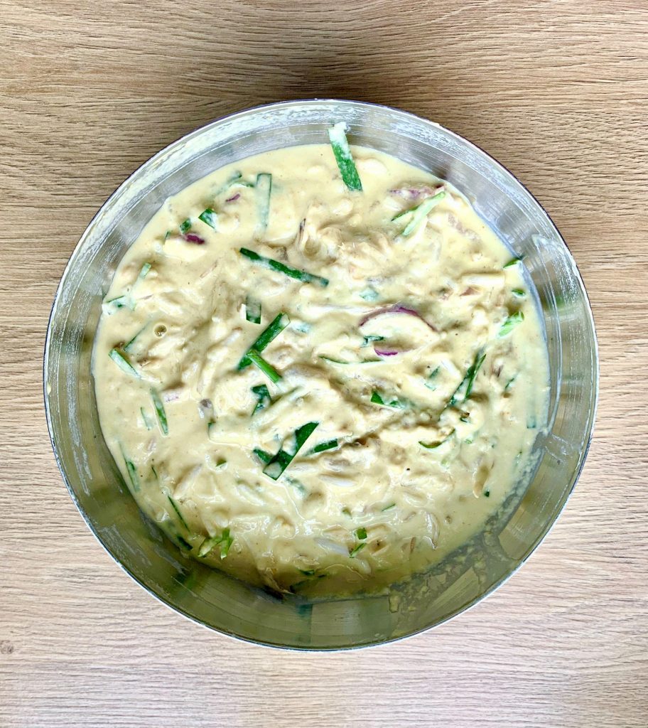 Gini rupa adunan dia. Perap dalam sejam baru goreng. Sebab apa? Sebab nak bagi adunan sejuk, sebab tadi bancuh guna air suam. Kalau nak cepat masuk fridge, kalau fridge dah penuh biar kat luar.