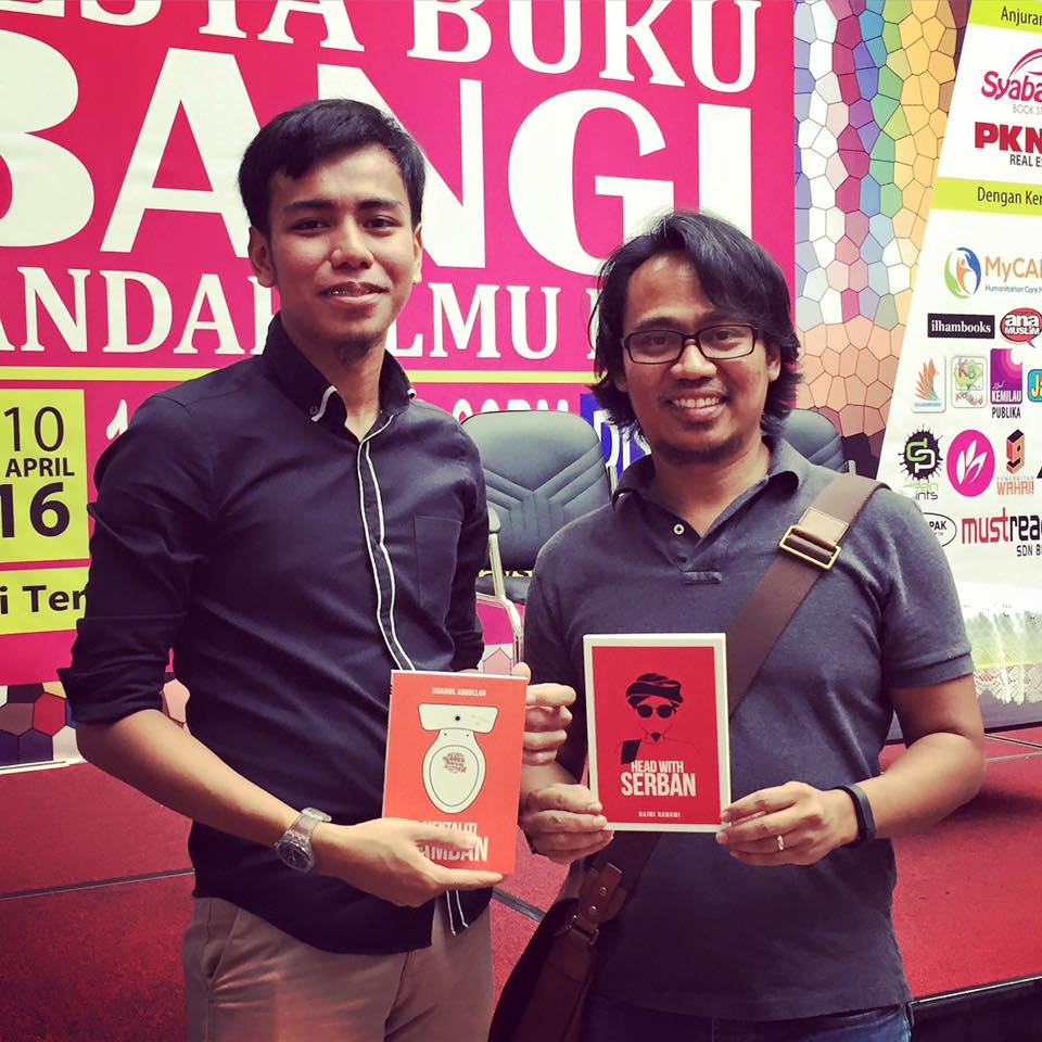 Di sebelah abam tu adalah Najmi, penulis buku Head With Serban. Kami sedang gigih mempromosikan buku masing-masing dengan gaya paling hensem.
