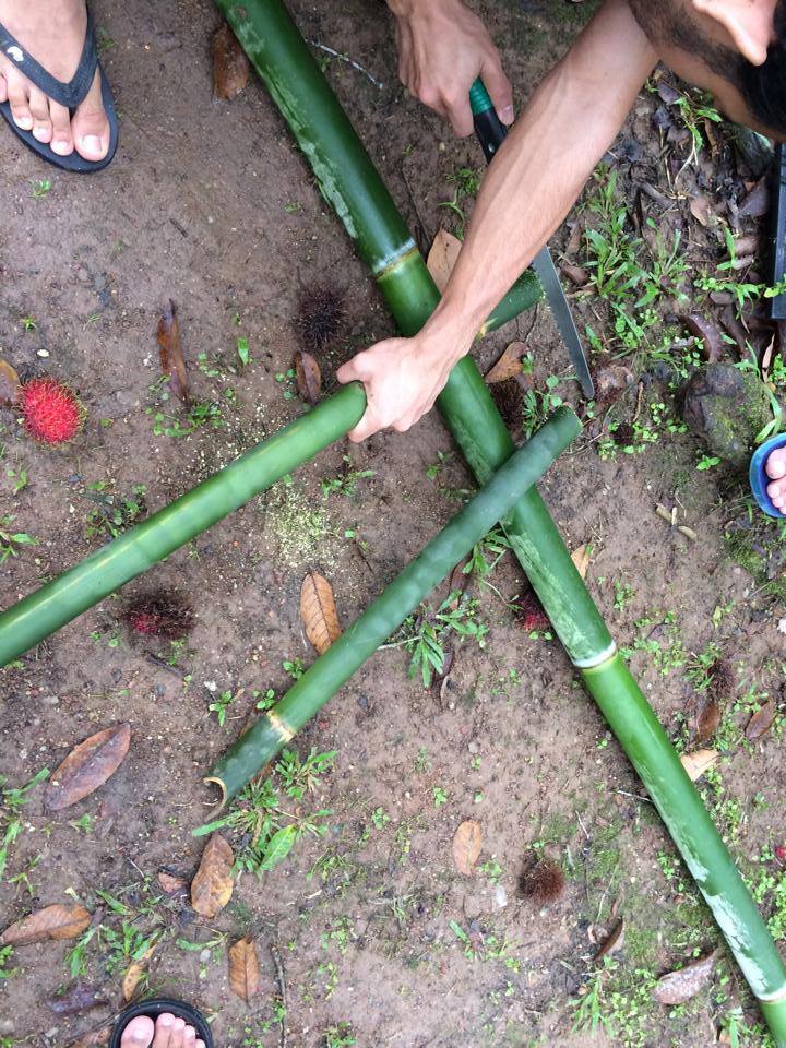 Buluh dah ready, saya tukang tebang dan potong buluh jer. Mak yang gulung dan masukkan daun pisang. Kejap lagi nak start bakar.