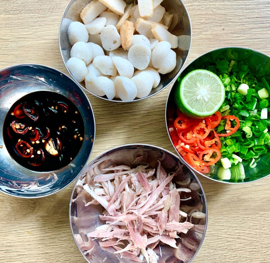 2. Sambil tu kau potong fishcake dan fishball tu.