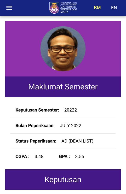 Tidaklah cemerlang tetapi cukup buat aku. Dean List again, and again and again.