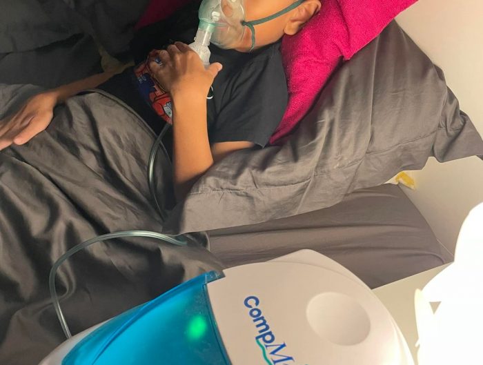“Daddy, daddy, it’s hard to breath!” Aku pun terus check nafas dia. Aahh “wheezing” sakan kat paru-paru dia. Jap daddy pasangkan neb. Terus aku ambil nebulizer, pasang tepi katil, masukkan ubat tekan …