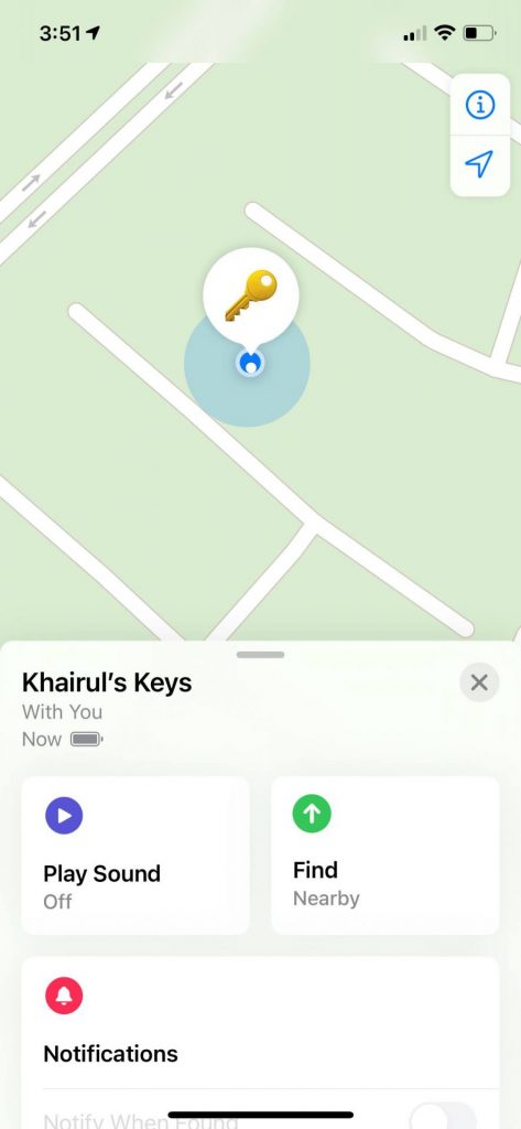 Tapi, bunyi alarm kat Airtag tu sama kuat jer dengan iTag yang aku beli 4 hengget tu. Kalau aku tekan bagi bunyi sahaja dan aku pergi cari memang berpeluh juga nak jumpa.
