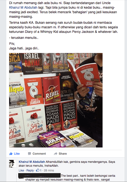 Katanya lagi, adalah sangat “rare” untuk beliau dan anak-anak dapat bersembang dan berkongsi cerita bab dari sebuah buku bersama-sama.