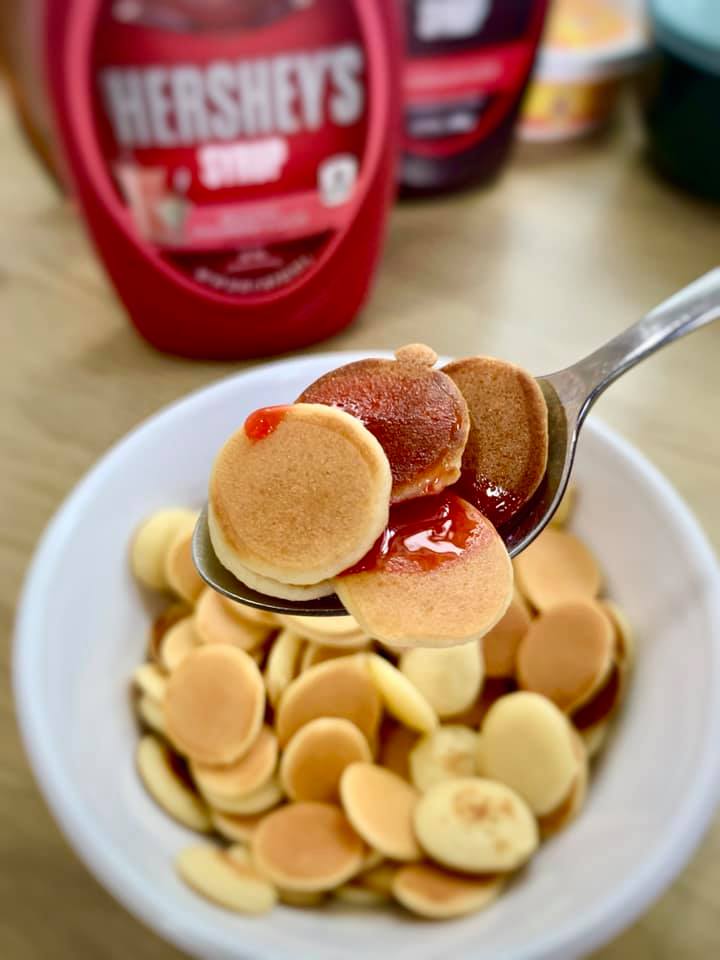 Boleh nak makan dengan susu macam cereal, boleh nak letak butter dan maple syrup, boleh letak aiskrim dan apa sahaja yang manis.