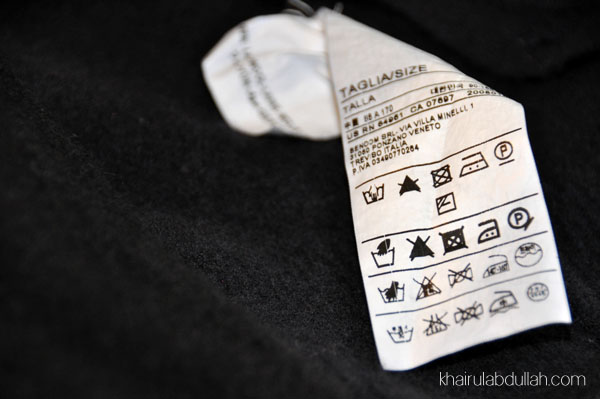 Cardigan dan pullover yang bersaiz dewasa (S) kini telah menjadi cardigan untuk kanak-kanak berusia 4-5 tahun. Sedih saya melihatnya. Setelah meneliti di “washing instruction” di pakaian tersebut – barulah saya perasan yang telah diberi amaran disitu yang ianya tidak boleh dibasuh dan dikeringkan menggunakan mesin.