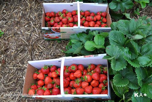 Strawberi kat sini dengan kat malaysia tu sama jer rasanya..so tak payah terliur pun takpe :)Yang bezanya cuma fresh…kalau nak petik jugak macam ni kena pegi cameron highland lah.