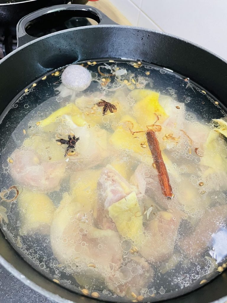 Masukkan air ikut nak banyak mana. Lepas tu masukkan ayam serta sup bunjut.
