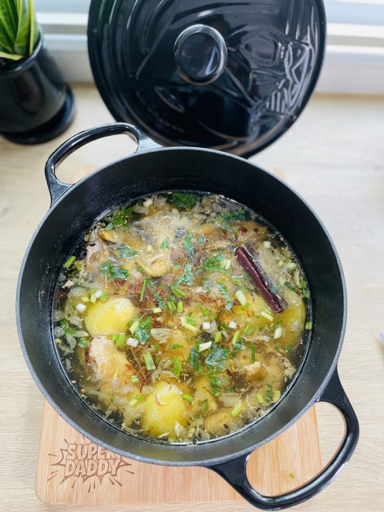 Biar mendidih dan sampai ayam empuk dan masukkan kentang dan jua garam secukup rasa.