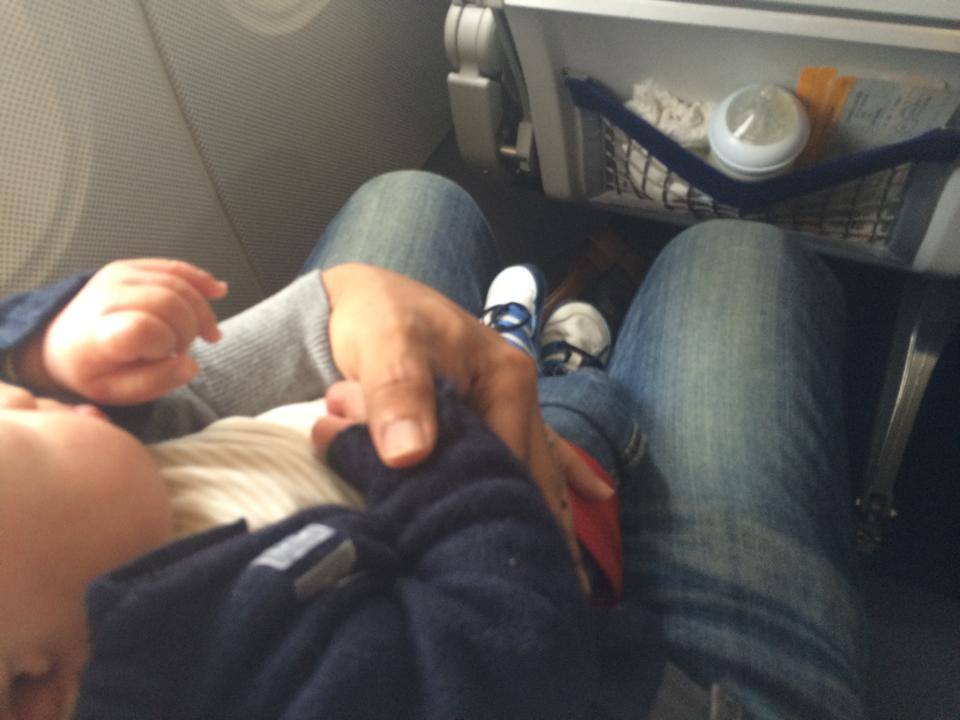 Saya meminta pramugari membuat susu untuknya dan bersedia utk bagi ketika take off. Namun, dia tidur apabila tayar kapal terbang terangkat dan kembali terjaga setelah mendarat.